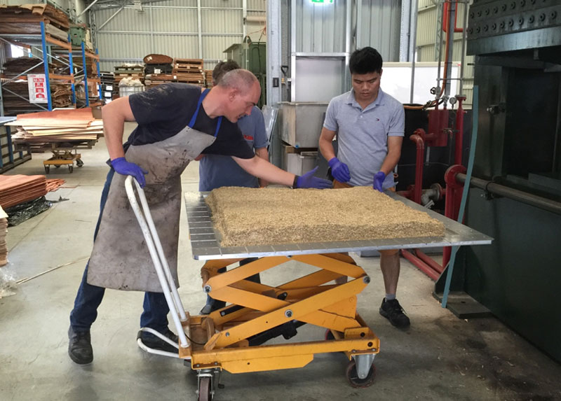 Mr Manh, the 2018 Crawford Fund Fellow, researching the development of panel production using agricultural waste material – in this instance sorghum stalk material