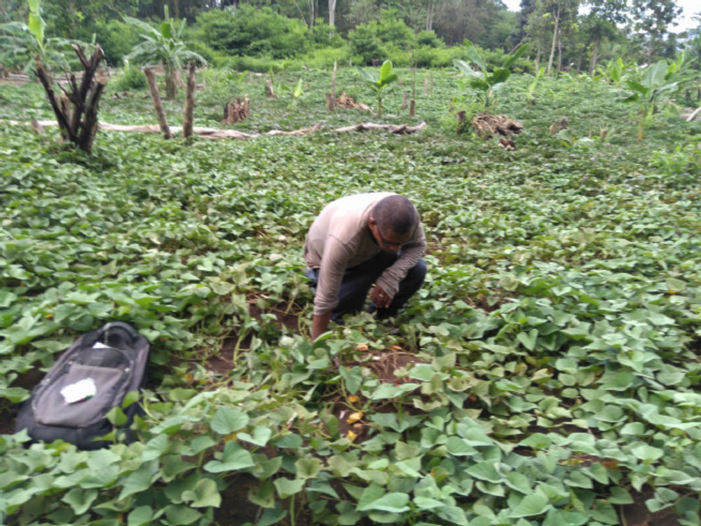 Surveying for sweetpotato weevils on sweetpotato plots on the out-sketch of Honiara in Solomon Islands.